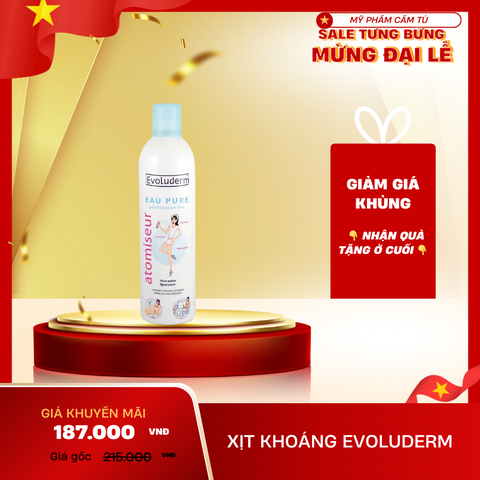 7. 💦 Xịt Khoáng Evoluderm – Cấp ẩm tức thì, làm dịu da nhanh chóng
